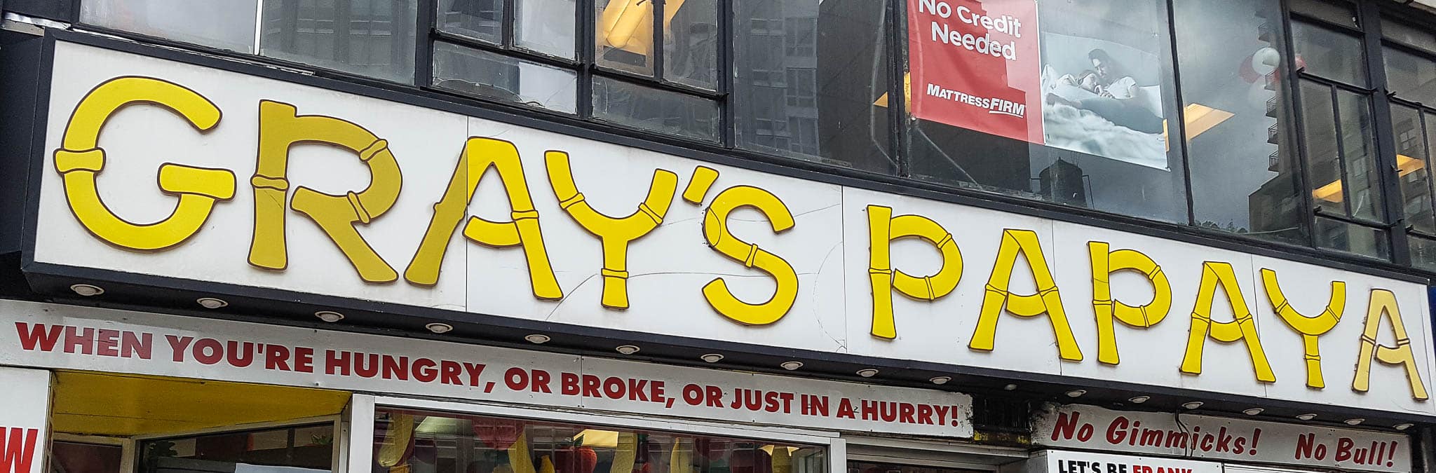 Situado muy cerquita de Central Park, a dos calles de distancia, Gray’s Papaya se encuentra ubicado en Broadway a la altura de la calle 72nd, justo al lado de la salida de metro de Broadway – 72 St. Este es un templo de los perritos calientes o hotdogs, y no esperes encontrar otra cosa. Al entrar tienes que elegir el hotdog que deseas comer e indicar, si quieres, los toppings que quieres incluir.